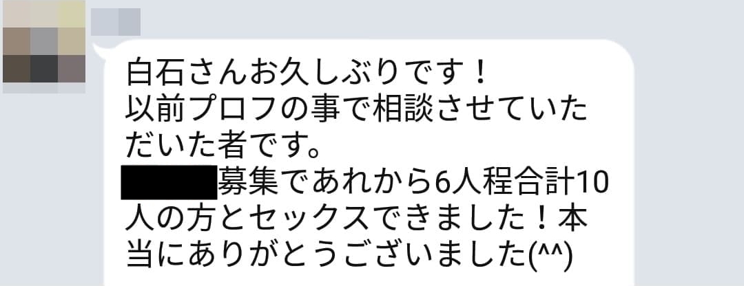 そんな時、メルマガで講座の案内が届いて「実際にセックス前提で会えた人の投稿文やプロフを見た方が早いな」と思い参加を決めました。